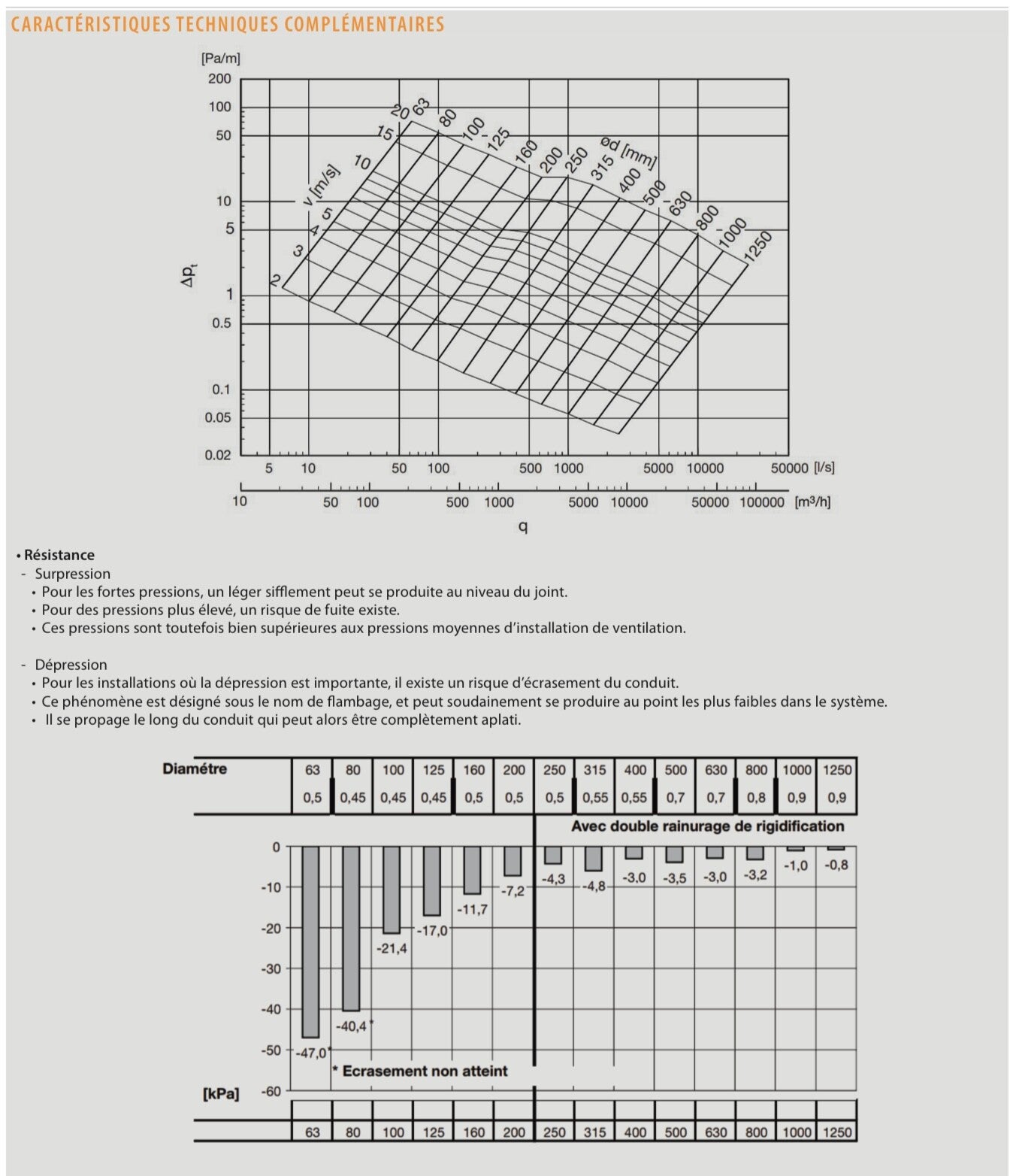 • Pour une meilleure rigidité, les conduits sont renforcés par un double nervurage à partir du diamètre 250 mm.